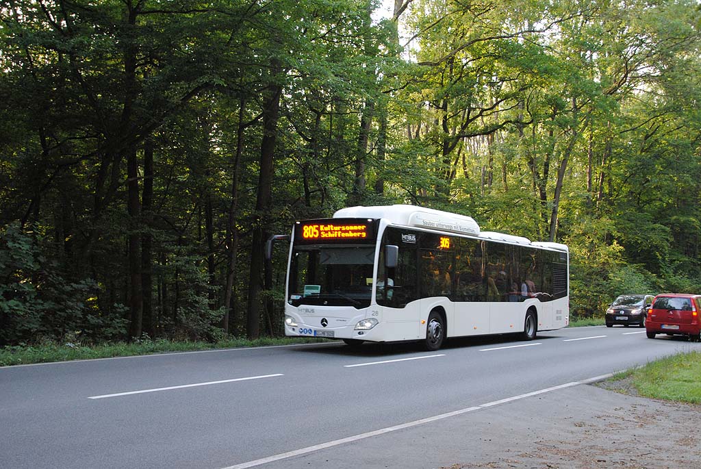 Im Jahr 2025 sind auch Busse der Mit.Bus am Shuttleverkehr vom Parkplatz am Philosophilkum zum Kultursommer auf dem Schiffenberg beteiligt. Am 20.08.2025 bringt Wagen 28 hier gerade auf der L 3131 vor Petersweiher eine neue Ladung Konzertbesucher auf den Schiffenberg.