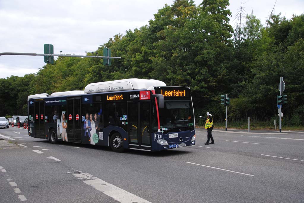 Im Jahr 2025 sind auch Busse der Mit.Bus am Shuttleverkehr vom Parkplatz am Philosophilkum zum Kultursommer auf dem Schiffenberg beteiligt. Am 22.08.2025 biegt Wagen 32 an der Kreuzung der L 3131 in die Zufahrtsstraße zum Schiffenberg ab. Obwohl schon "Leerfahrt" geschildert ist, ist der Bus prall gefüllt mit Konzertbesuchern.