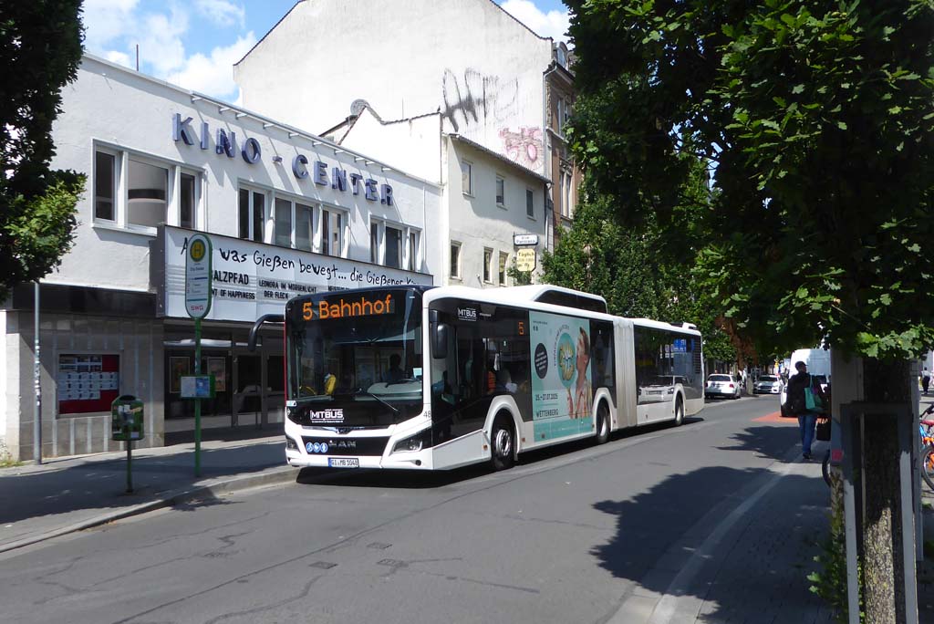 Der Wagen 48 (MAN Lion´s City 18 C) verlässt am 05.12.2024 gerade den Bahnhof zur Fahrt nach Wieseck.