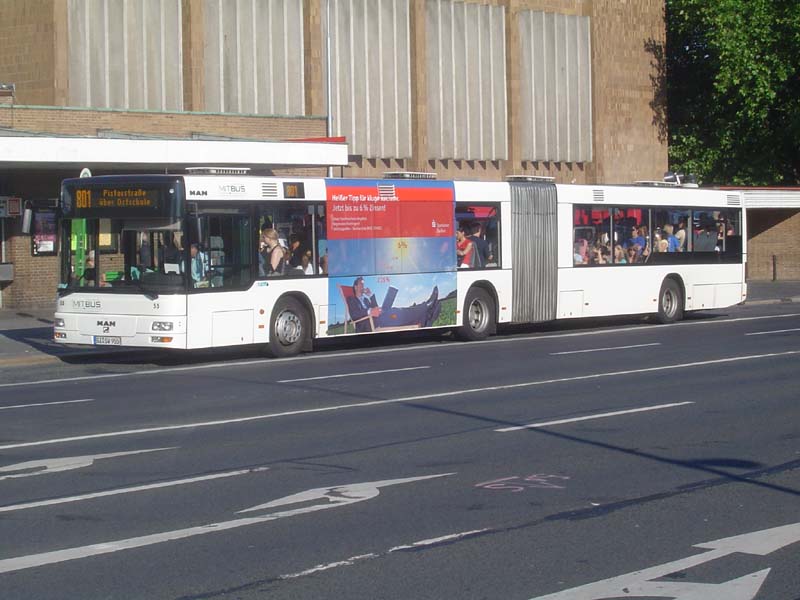 Am 04.07.2006 ist Bus 55 auf der Linie 801 unterwegs, hier am Berliner Platz.
