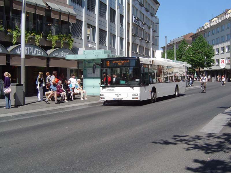 Mittlerweile schon wieder ohne Werbung, so wurde der Bus 6 am 30.04.2007 am Marktplatz fotografiert.