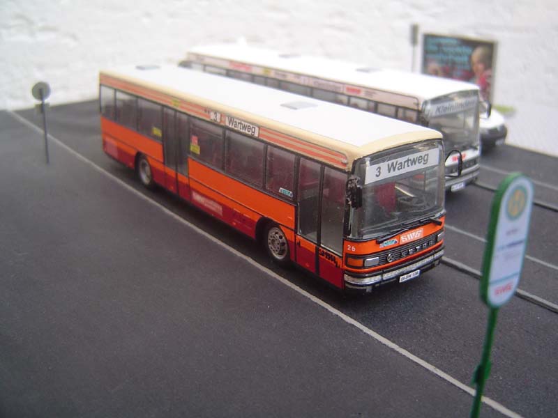 Basismodell: Herpa, geändert: Anordnung der Dachluken, komplette Neulackierung und Beschriftung, neue Außenspiegel